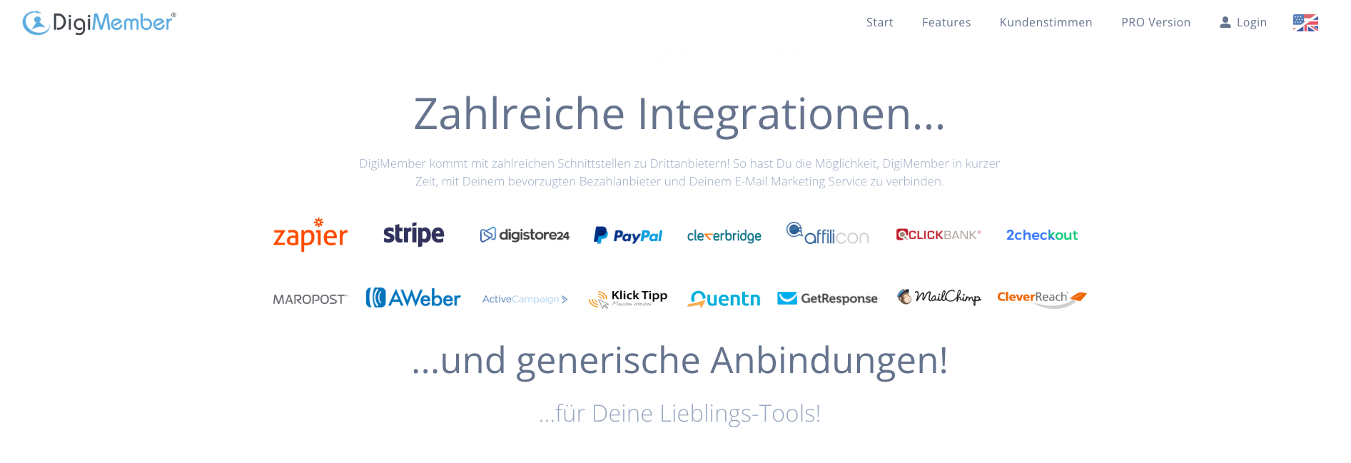 Überprüfe vor der Implementierung, ob deine bevorzugten Tools kompatibel sind. DigiMember bietet auf seiner Webseite eine Liste unterstützter Anbieter und Integrationen.