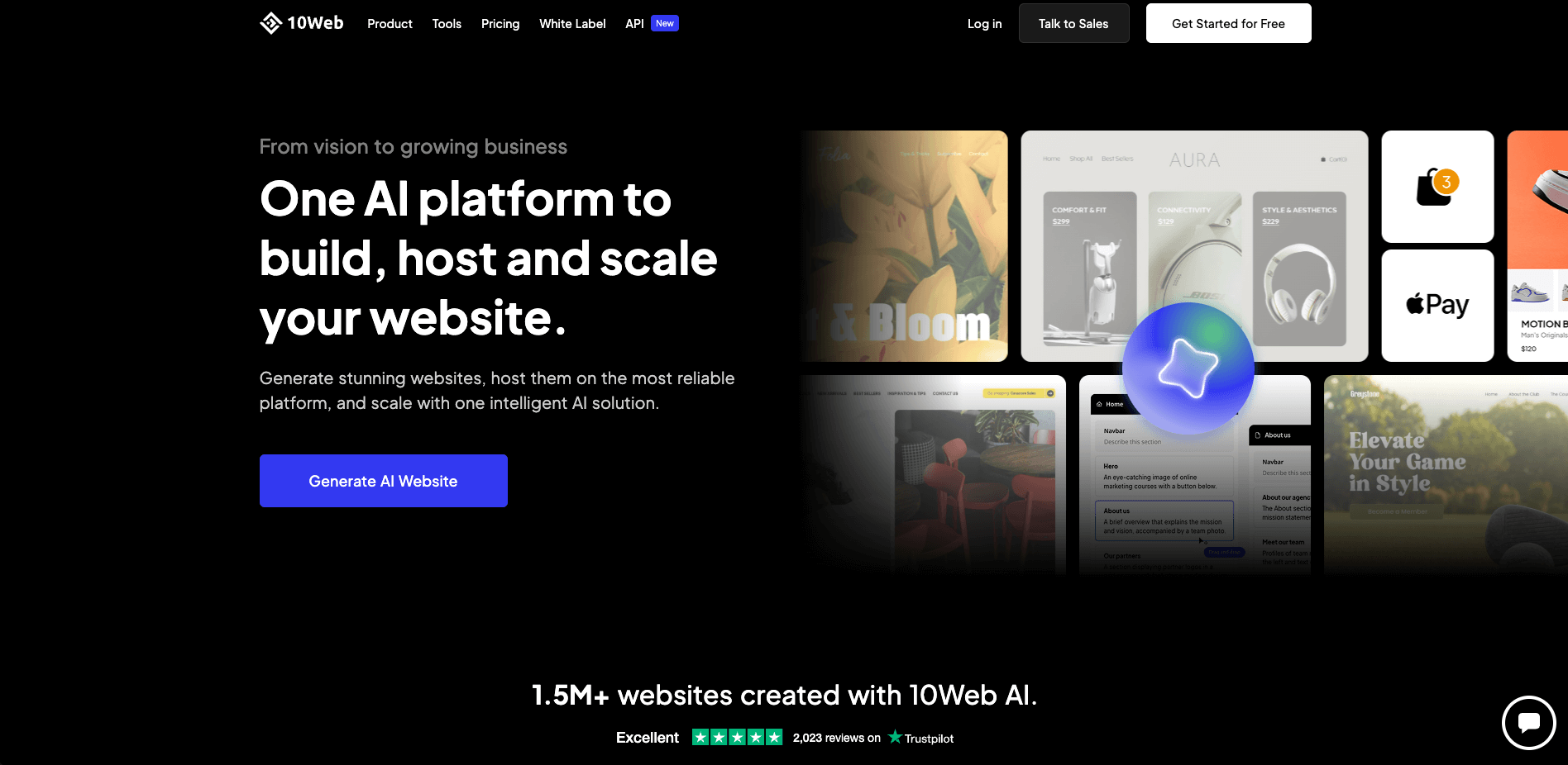 10Web ist ein KI-gestützter Website-Builder, der speziell für die Erstellung von WordPress Webseiten entwickelt wurde. Mit über 1,5 Millionen erstellten Webseiten ist 10Web eine benutzerfreundliche Plattform, die es jedem ermöglicht, ganz einfach professionelle Webseiten in nur wenigen Minuten zu erstellen. Hierzu benötigst du auch keine Programmierkenntnisse, sondern kannst mit nur wenigen Klicks eine ganze Seite erstellen.