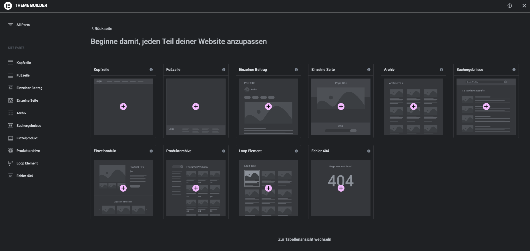- Gehe erneut in den Elementor Theme-Builder.
