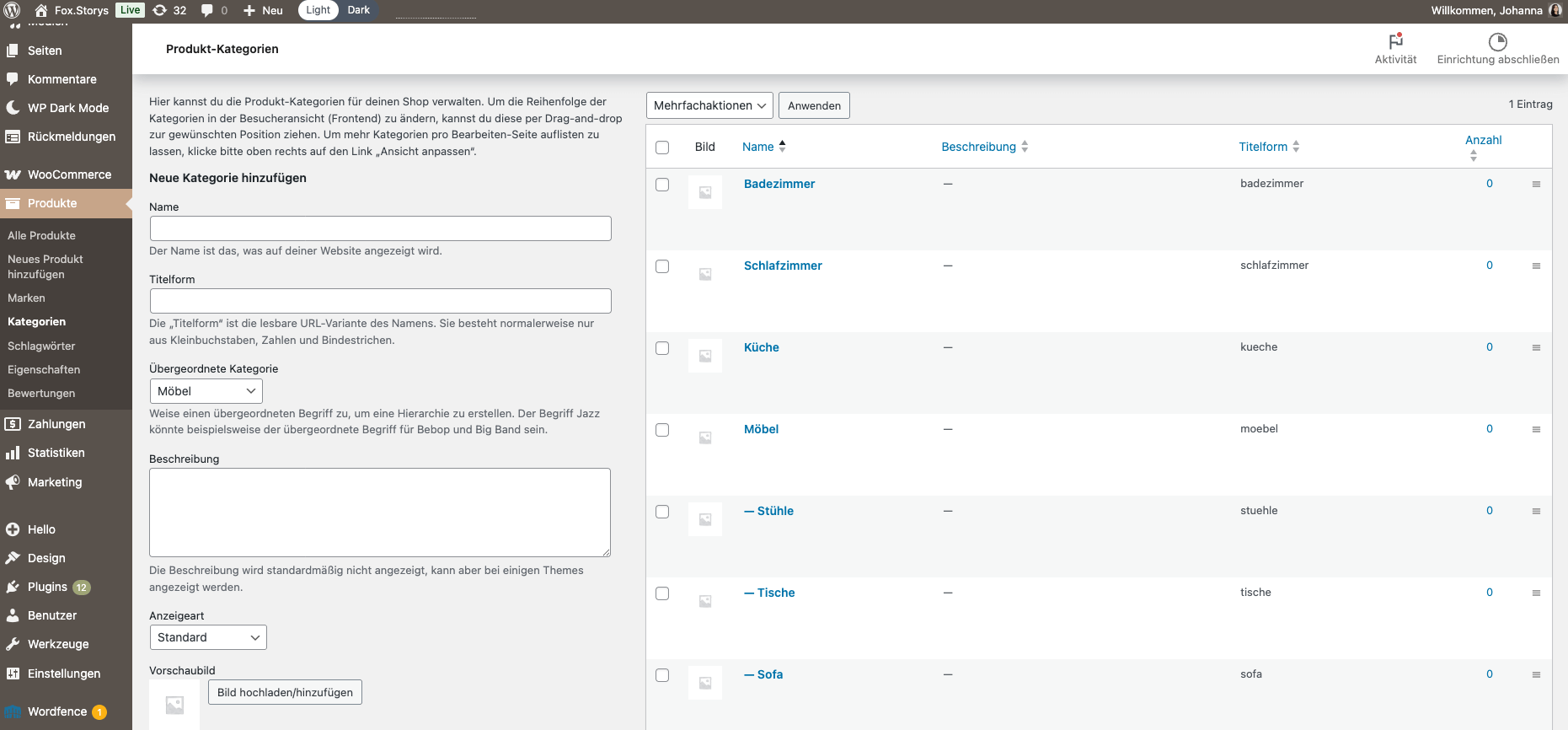 - WooCommerce erscheint nun als eigene Position in deinem Menü.
